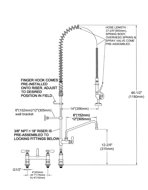 Available in a chrome finish, the Spray, Deck mountable Pre-Rinse tap is ideal for commercial kitchens and comes with a 2 lever setup and 12" bowl filler